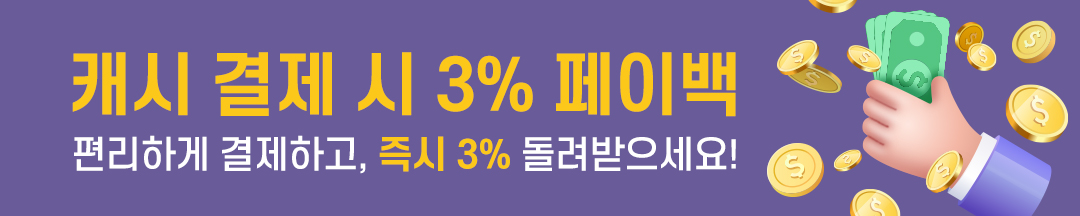 - 캐시 결제 시 3% 페이백
